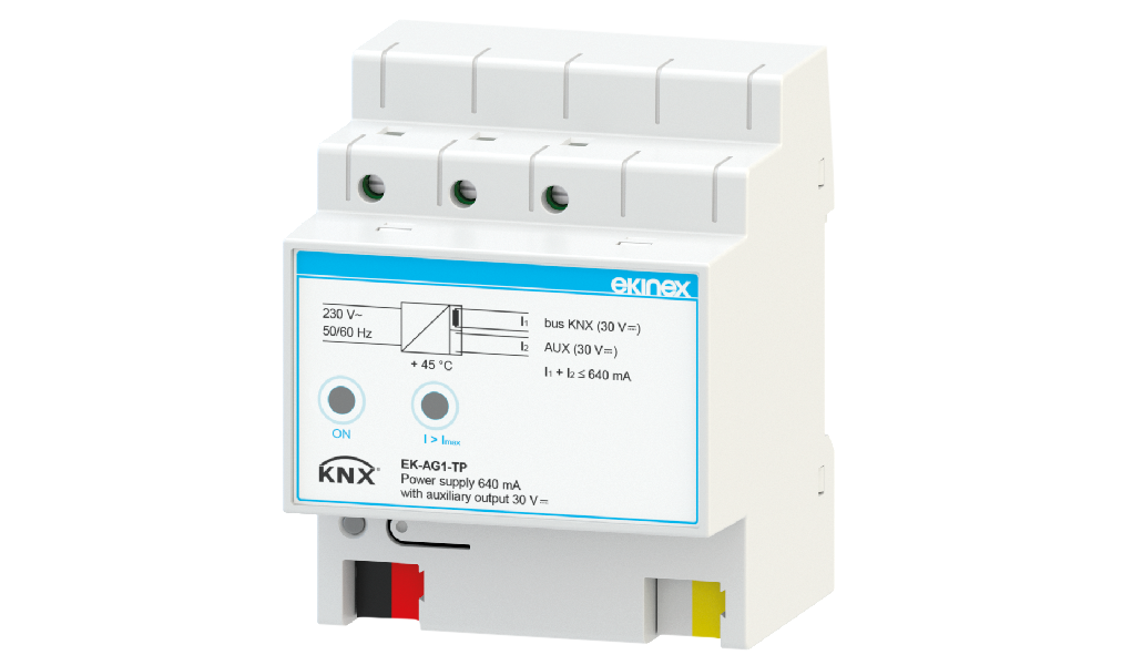 Ekinex® 640 mA KNX-toiteplokk tagab ja jälgib pidevalt KNX-süsteemi tööks vajalikku 30 V DC siini pinget.